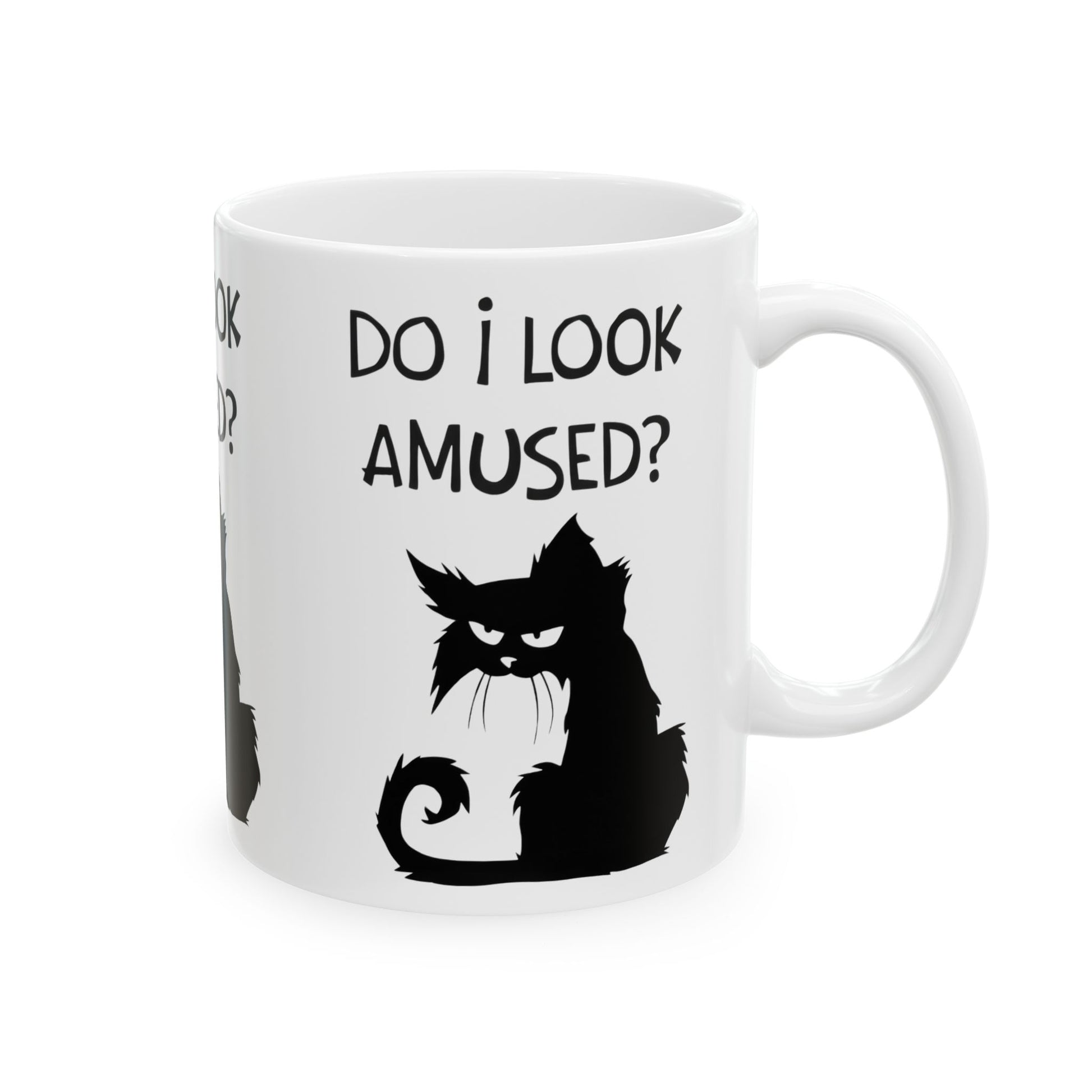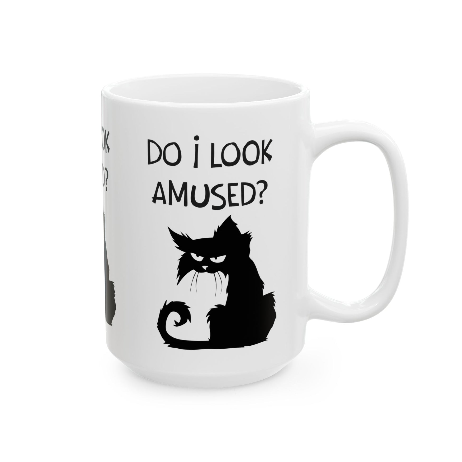 Ceramic Mug — "Do I Look Amused?" Grumpy Black Cat Coffee Mug (11oz, 15oz)