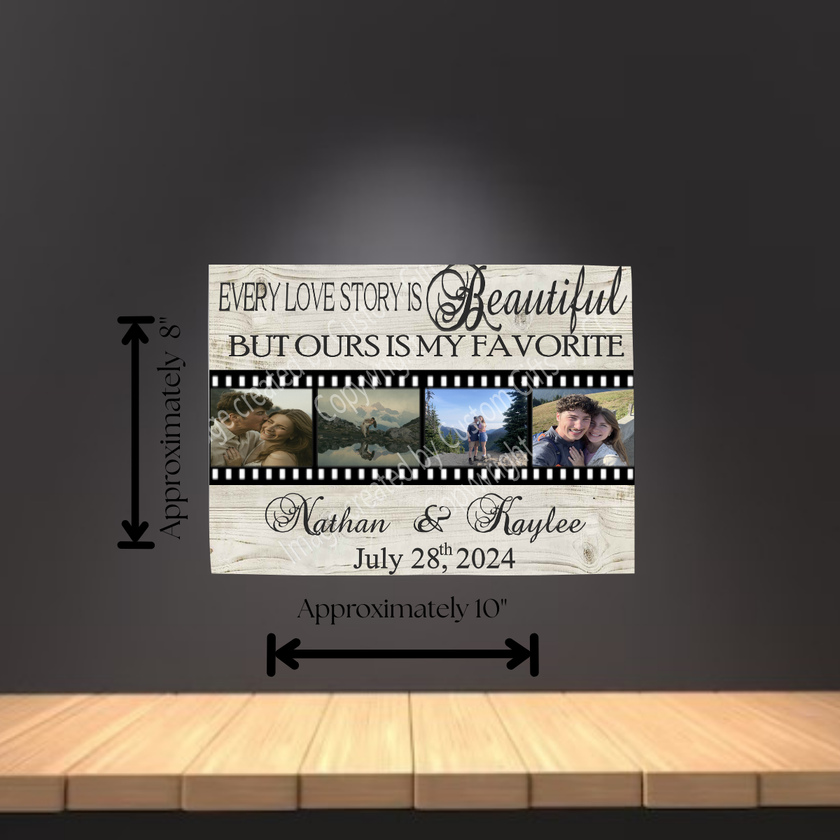 Turn your memories into timeless art with our custom-designed 8"x10" ceramic plaques. Each plaque is created from your photos, ideas, sayings, and dates—crafted to celebrate life’s most meaningful moments. Sealed with a radiant, glass-like resin finish, your design shines with lasting beauty and elegance. Ready to hang on the wall or display on a photo stand, these plaques are perfect for honoring loved ones, commemorating milestones, or gifting something truly personal. Before we begin, you’ll receive a preview image by email to approve or request changes, ensuring your vision is captured exactly as you imagined. More than décor, these plaques are keepsakes designed to preserve your story forever.